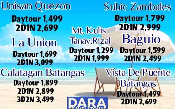 OPEN FOR JOINERS AND PRIVATE TOUR. CHOOSE YOUR PREFERRED PLACE AND GET THE BEST TRAVEL EXPERIENCE AT DARA TRAVEL AND TOURS JOINERS TOUR IS OPEN EVERY WEEKENDS SATURDAY – SUNDAY EXCLUSIVE TOUR CAN CHOOSE ANY DATE YOU WANT FOR BOOKING AND RESERVATION,YOU MAY CONTACT US THROUGH MESSENGER OR FB PAGE : https://www.facebook.com/daratravelandtour/ WALK IN : …